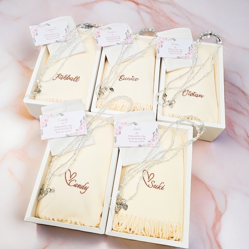 在大婚日的忙碌時刻,姊妹們既要聯繫各方,又要拍照留念,手機絕對是機不離身!DeBeau推出姊妹禮盒,內含客製化刺繡披肩+字母串飾手機掛繩,為姊妹團提供貼心又實用的禮物,讓她們在Big Day中既時尚又舒適。無論是婚禮當天還是日常使用,DeBeau姊妹禮盒都能為姊妹們帶來溫暖與便利。立即訂製,為她們送上最貼心的驚喜!💕📱🧣